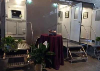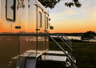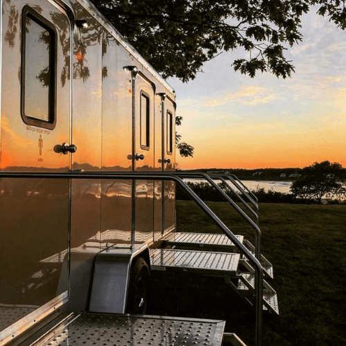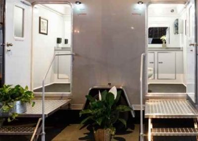 Our luxury restroom trailers were designed to be spacious and comfortable with running water and air conditioning. Royal Thrones is known as the friendly, professional, and yes, luxury option for restroom trailer rentals. Our trailers are designed to create the experience of a 5-star hotel.